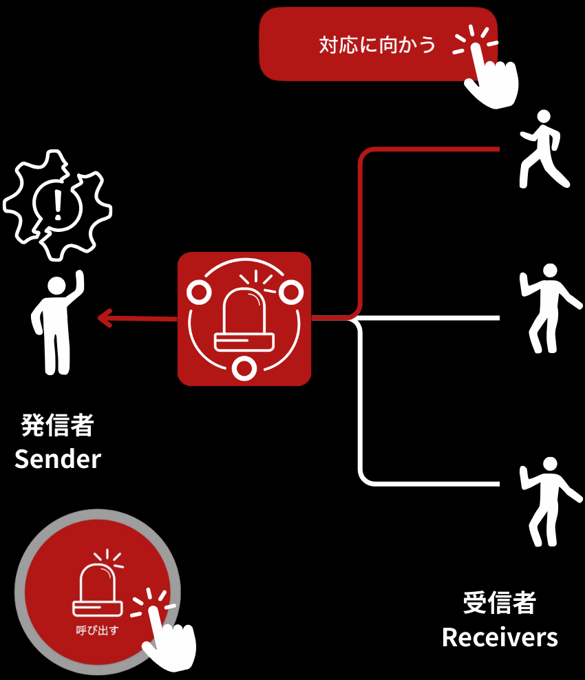 もっと 手軽に 呼び出したいときに いますぐAlertHubアプリをダウンロード だれかを呼び出したり、呼び出された際の応答や他人の状況の共有をリアルタイムで行えるアプリ 呼び出し後の状態を6種類に分類してリアルタイム共有 呼び出し中 対応中 呼出後に解決済み 全員対応不可 呼び出したが応答なし 発信側で呼出取消済み Watch用アプリではPUSH通知のアクションボタンからすぐに応答可能 1つのアカウントで複数デバイスにログイン可能 チームの連携力を高める、コミュニケーション強化機能 — 役割に応じた使いやすさで、コミュニケーションをもっとスムーズに! 発信者向け機能 グループ作成 他ユーザーのグループへの追加 呼び出し 呼び出しの取消 解決済みへの状態更新 呼び出し履歴の確認 各種設定変更等 その他 受信者向け機能 呼び出し履歴の確認 呼び出しへの応答 上記応答の取消 その他 カンタン操作で、すぐにスタート! STEP - 1 登録してログイン!発信者?受信者?役割を選ぼう! STEP - 2 グループを作成し、他のユーザを招待しよう! STEP - 3 すぐに呼び出す、すぐに対応に向かう! 詳しい使い方はこちら! 料金プラン ベーシック ¥0 最大3グループに参加可能 再通知なし 呼び出しのタイムアウトは10分固定 1日最大3回まで呼び出し可能 プレミアム ¥500/月 最大10グループに参加可能 再通知なし 呼び出しのタイムアウトを 5分~15分で編集可能 1日最大10回まで呼び出し可能 詳細情報 プロ ¥1000/月 最大50グループに参加可能 再通知は30秒以上で自由に設定可能 呼び出しのタイムアウトは10秒~30分で自由に設定可能 1日の呼び出し制限なし 詳細情報 専用カスタマイズ可能 ご希望があれば専用設計の検討をしますのでまずはお気軽にご相談ください。 相談する お問い合わせ このフォームに入力するには、ブラウザーで JavaScript を有効にしてください。このフォームに入力するには、ブラウザーで JavaScript を有効にしてください。名前 *名姓メールアドレス * 問い合わせ内容 メールアドレス 名前 問い合わせ内容 *-- 選択 --機能使い方プランその他詳細送信する